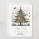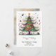 Extravagante y caprichoso ilustracion de árbol de Navidad en una tarjeta plana de vacaciones. El dorso de la carta es un diseño abstracto de copos de nieve de bonito. Se puede cambiar el texto. Gráfico asistido por IA adquirido con uso comercial. Pintura: RedHeronLighthouse y RavenPrintableDesign