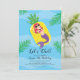 Invitación a la fiesta de cumpleaños de la piscina con una sirena flotando en una carroza de piña.