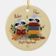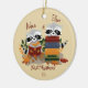 Un primer adorable adorno navideño para tus gemelos con dos pequeños mapaches en la parte delantera y un patrón de hojas en la parte trasera. Personalice este keepsake con el nombre de sus hijos y el año . © ArianeC Ilustraciones-Todos los derechos reservados