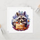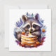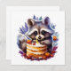 Raccoon de invierno con una tarta de cumpleaños número 1