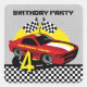 Revisa el cuarto cumpleaños de tu hijo con nuestro diseño de cumpleaños de autos de carrera. Con un coche de carreras rojo con rayas de carreras, banderas a cuadros y un gran número 4. Side of car dice BIRTHDAY CHAMP. Perfecto para tu pequeño ganador de un coche de carreras. Fondo de placa de diamante en productos seleccionados. En camisetas, invitaciones personalizadas para fiestas de cumpleaños, papelería, sobres, gracias postales, favores de fiesta, franqueo, tazas, keepsakes y más! ¡PinkInkArt original!