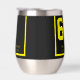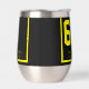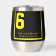 Mantén tu vino fresco en tu fiesta o picnic en el hipódromo con este vaso de vino térmico personalizado. Un regalo personalizado perfecto para que los aficionados a las carreras disfruten de su bebida favorita al sol. Personalizado con un nombre o nombre de evento o ambos, este vaso de vino le dará un toque colorido a cualquier fiesta de derby o a cualquier fiesta de carreras de caballos. Este diseño a medida está inspirado en las frazadas de montura de caballo de carrera o en los tejidos de montura, al igual que los de lente en las grandes carreras de caballos. Disponible en una variedad de colores y números. Mezclar y emparejar para una mirada divertida. Fondo negro con acentos amarillos. Estilo tradicional para el caballo número 6. Disponible en acabado inoxidable o blanco.