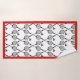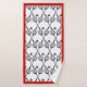 Regalos de bádminton, racquet y toalla de baño personalizado de transporte con monograma mostrando un minimalista icono negro de dos racquets de bádminton y un transbordador con un borde rojo. La toalla de mano tiene rayas negras, blancas y rojas, mientras que el paño de lavado es de color rojo con tu monograma.