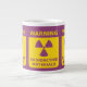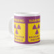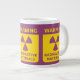 Advertencia - materiales radioactivos - taza enorme con un diseño del símbolo amonestador de la radiación en púrpura y amarillo. Gran taza del chile.