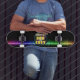 Un skateboard con el logo de RFHC y la onda sonora. ¡Increíble!