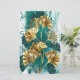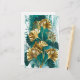 Rama con joyas, oro y hojas verdes de Ginko biloba en luz, fondo verde pintado. Ginko biloba