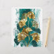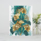 Rama con joyas, oro y hojas verdes de Ginko biloba en luz, fondo verde pintado. Ginko biloba