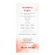 Este programa de bodas muestra una hermosa mezcla de elementos de diseño japoneses y escandinavos, conocidos como japonés, con un toque de sencillez y elegancia. Este diseño boda presenta una línea vertical en el lado izquierdo, que se extiende hacia la parte superior de la invitación cuando se agregan los nombres de la pareja. Delante de la luna, una rama es elegante, de estilo sencillo, con tonos cálidos de terracota y rojo marrón. El fondo está decorado con un delicado lavabo acuático que aporta un toque suave y artístico. En la parte posterior, el mismo fondo acuático prepara el escenario para un mensaje sincero de "Gracias", completando la estética general.