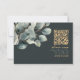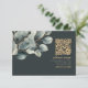 Responder a su boda de forma sencilla y elegante con esta elegante tarjeta RSVP de eucalipto. El diseño de las hojas de eucaliptos suaves contrasta con un fondo verde profundo, realzado con lujosos toques dorados que le confieren un toque moderno y refinado. La frase "Please RSVP" está bellamente escrita en un guión de estilo con letras a mano, mientras que sus nombres y la fecha de respuesta se muestran en un tipo clásico de letra serif, añadiendo un toque sofisticado. La tarjeta también incluye un cómodo código QR, lo que permite a los clientes realizar RSVP sin esfuerzo con sólo un rápido escaneo. Ideal para parejas que valoran la elegancia y la comodidad.