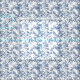 Un refinado patrón de toile azul y blanco con ramas curvadas con gracia adornadas con flores florecientes y hojas delicadas, ilustrado con un estilo clásico de grabado vintage.