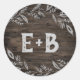 Estos sellos para sobres de boda de madera con ramas curvas son perfectos para un boda moderno. El diseño de la moda rústica presenta la silueta de dos ramas florales dispuestas para componer una corona rústica y frondosa sobre un fondo de madera. Personalice la etiqueta con las iniciales de la novia y el novio.