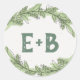 Estos sellos para sobres bodas de ramas curvas son perfectos para un boda moderno. El diseño artístico se compone de dos ramas de color agua abstractas que componen una florida corona rústica. Personalice la etiqueta con las iniciales de la novia y el novio.