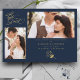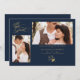 Tarjeta de compromiso de ramas de moda azul marino con sobre con 2 fotos.