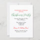 Invitación a la fiesta de Navidad. Ramas festivas de agujas de pino perenne con conos de pino, tronco de madera y lazo rojo, campana dorada y bayas rojas. La parte posterior tiene detalles de la fiesta. Tipografía de letra elegante en negro, rojo y verde. Diseño de fotografía original por TamiraZDesigns.