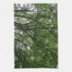 Esta impresionante toalla de cocina muestra una fotografía tomada desde dentro de un bosque denso. La fotografía muestra las vistas al cielo a través de una hermosa y enrevesada red de ramas de árboles y ramas verdes y lujosas hojas.