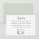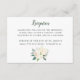 La tarjeta de recepción de boda de estilo clásico presenta un texto que se puede personalizar para su evento en colores verde intenso y negro suave. Un ramo de flores acuarelas elegantes con rosas pintadas, flores de ranúnculo y hojas en tonos neutros de blanco, rosa sonrosado, crema, dorado y verde acentúa la parte delantera. Un color verde suave con patrón de puntos cepillados adorna la parte posterior de la tarjeta. Perfecto para un evento de primavera o verano.