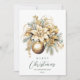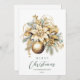 Diseño de Navidad elegante, clásico y lujoso en dorado y verde (menta, verde azulado claro) con adorno de Navidad dorado y elementos florales dorados.