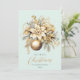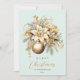 Diseño de ramo de Navidad de lujo elegante y clásico en oro y verde (menta, azul claro) con adornos navideños dorados y elementos florales de oro.