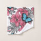 Ramo de flores tropicales, hojas de palma y mariposas dibujado a mano