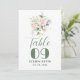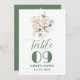 Ilustración de acuarelas de ramo de rosas rosadas pastel para número de mesa de boda—de doble cara con colores reversibles blanco y verde oliva.