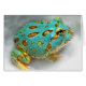 Lindo como puede ser, las ranas del Pac-Man vienen en una variedad de colores, incluyendo la rana azul del Pac-Man. Son los pequeños depredadores lindos de la sentar-y-espera que acechan su presa y entonces abren sus bocas enormes y chupan su presa en sus vientres grandes, redondos. ¡Son también cannabalistic! Y tenga cuidado cómo usted los maneja. Pegúese la mano delante de una, y usted puede ser que consiga una mordedura bastante desagradable. Como usted conjeturaba probablemente, se llaman las ranas de Pac-Man porque se asemejan al carácter del videojuego del mismo nombre. Encuentre los sellos a juego en nuestra galería. Advertencia: Soy diseñador, no experto en herpetología. Si no he identificado este animal correctamente, deje por favor un comentario con la identificación apropiada. Gracias.