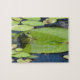 Rana en un rompecabezas del cojín de lirio