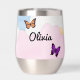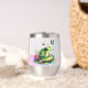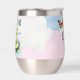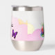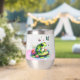 Un arte de arte personalizado que representa una adorable rana sentada en una almohadilla de lirio rodeada de flores rosas y mariposas con vibraciones acuáticas.