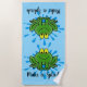 Toalla de playa de diseño de escoba de rana verde con color de fondo de personalizable y texto.
