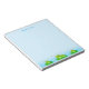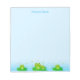Ranas pequeñas felices y lindas en un bloc de notas turquesa azul claro. ¡Las ranas simbolizan la buena suerte!