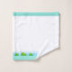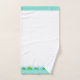Graciosas ranas Happy en un juego de toallas de baño blanco y turquesa.