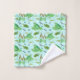 Un juego de toallas con tema de estanque con un patrón de ranas, tortugas, peces e insectos ilustrados con tinta y acuarela acentuados con un sólido kelly verde en la toalla de baño.