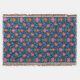 Una bandeja de madera de moda que sirve, con un colorido patrón de flores Naranjas y rosas y puntos de polka en un fondo azul profundo que se puede cambiar si se desea. (Negro, Blanco, Amarillo Dorado y Turquesa son grandes alternativas!) Parte de la colección Posh & Painterly 'Rangoli'.