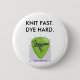 2" botón redondo de la parte posterior del perno, logotipo blanco del fondo w/Stitchjones. Texto: "Rápido de punto. Tinte difícilmente."