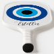 Raqueta de pickleball personalizado con el logo de Evil Eye. Símbolo griego de suerte de Blue Mati turco.
