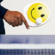 Raqueta ping pong de goma con una yema de huevo contenta muy bonito ^^