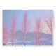 Pintura digital de abedules cubiertos de nieve; la nieve matiza el rosa por el sol abrasador. Aquí en el norte es común ver árboles cubiertos de nieve teñidos de rosa o naranja por el sol colgando bajo en el horizonte.