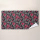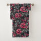 Raspberry, flores borgoñas con hojas grises en un fondo gris oscuro.