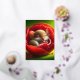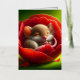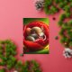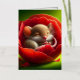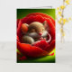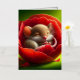 Un ratón tierno y esponjoso durmiendo pacíficamente dentro de una vibrante flor de amapola roja. Los pétalos de la flor son suaves y detallados, rodeando el ratón como una cama acogedora. El entorno está decorado con suaves tonos verdes que crean un ambiente sereno y tranquilo, con un toque de luz brillante que le da un toque mágico.