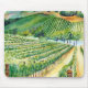 Pintura en acuarela de las colinas onduladas llenas de viñas en un viñedo de California.