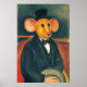 Ratón antropomórfico con traje negro y gorra negro, al estilo de Edvard Munch. Este es un arte generado por IA.