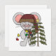 Un ratón adorable del navidad en un casquillo de media rojo pone la cadena de luces de navidad en el árbol del día de fiesta en las camisetas del día de fiesta del tema del ratón, las tazas, las tarjetas, los pegatinas, las bolsas de asas, los imanes, los llaveros, los ornamentos y las cajas del recuerdo, los relojes de pared, y otros artículos del día de fiesta.
