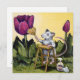 Un cuidador de ratón dobla los tulipanes. Una tarjeta para enviar a alguien que se preocupa.