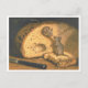 Esta postal es una reproducción de una litografía vintage llamada "Viendo a través del centeno" que muestra a un ratón pasando por el pan de centeno mientras su amigo espera cerca. ¡Los ratones son adorables!