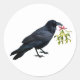 Un cuervo sostiene un brote de mistletoe en este pegatina de vacaciones de gótico.