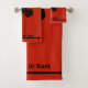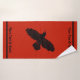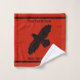 Una silueta simple y negra de un Raven (Corvus corax) sobre un fondo rojo. La imagen del cuervo ha sido ligeramente "áspera" o "desgastada". Hay dos lugares para que añadas tu propio texto. Puede elegir otro color de fondo.