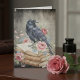 Send a touch of poetic elegance with this unique notecard. Featuring a mystical raven perched on vintage books, adorned with delicate pink roses and falling petals, it evokes a romantic gothic charm. Perfect for heartfelt messages, thank you notes, or simply to brighten someone's day, this card is ideal for lovers of literature, nature, and vintage aesthetics.