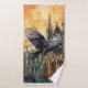 Raven volador y catedral gótica medieval