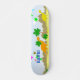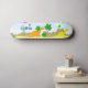 ¡RAWR! Monopatín del dinosaurio. Un monopatín fresco con un naranja y los dinosaurios del Diplodocus del dibujo animado del amarillo en un paisaje prehistórico de la Edad de Piedra con las montañas, los árboles y los vulcanos del tiroteo de la estrella contra un cielo azul con las nubes blancas. ¡Este monopatín de Dino es completamente adaptable! Añada su nombre y personalícelo con sus textos e imágenes. ¡Un gran regalo del dinosaurio a la pequeña fan grande de Dino!