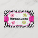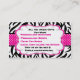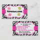 Esto es una tarjeta de visita adorable. Tiene rayas blancos y negros de la cebra con una cinta del lunar de las rosas fuertes que viene a través del centro de la tarjeta. Hay un centro burbujeado blanco con cuatro pequeñas flores en las esquinas del centro blanco. Compruebe hacia fuera los muchos otros productos con este diseño.