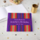 Este colorido libro de invitados de la fiesta de cumpleaños está decorado con un patrón abstracto de rayas en un espectro de naranjas, púrpura, amarillo, rojo, verde, violeta y negro que se asemeja a un bello arco iris. Personalice o quite fácilmente el texto.